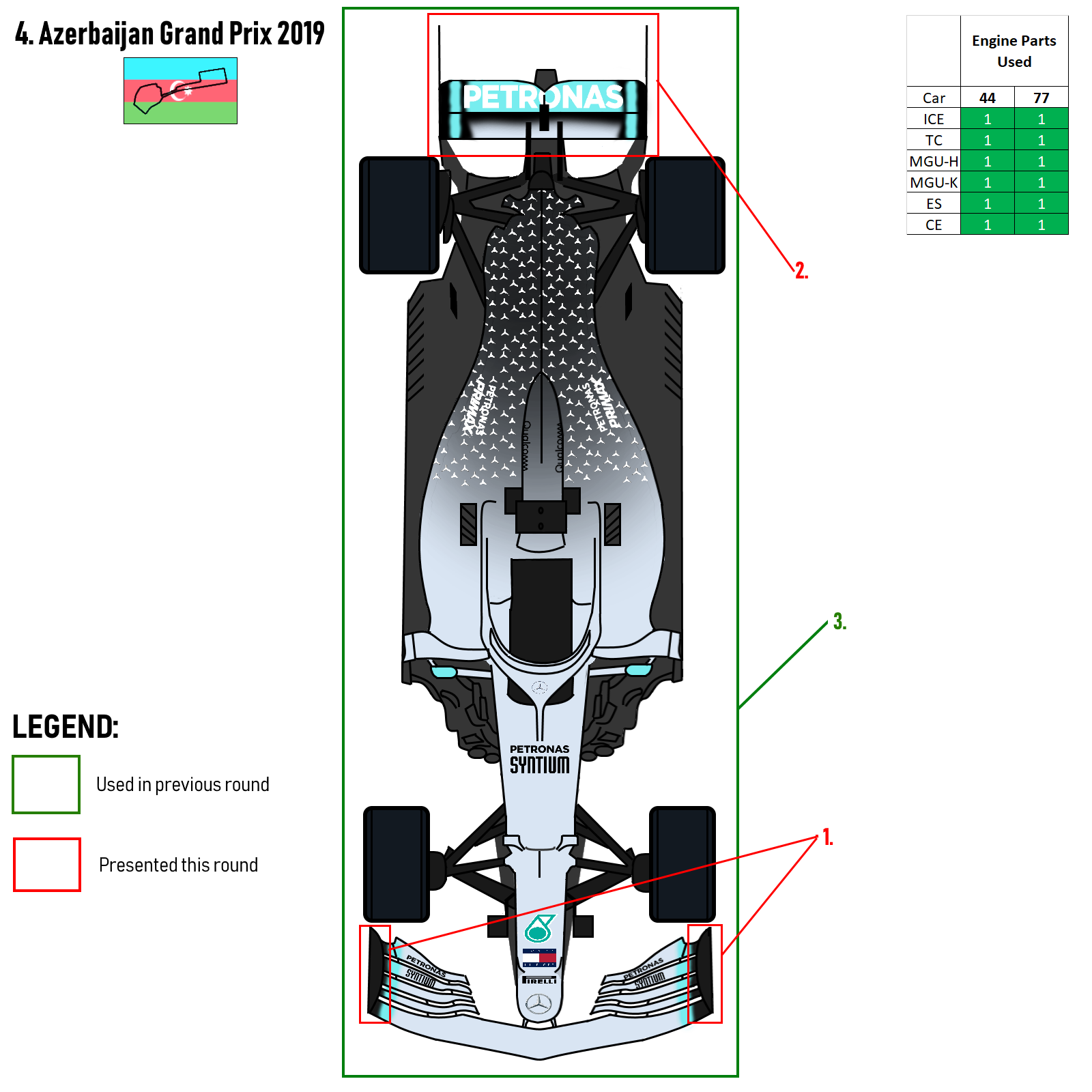 Mercedes had to change their Endplates again for Azerbaijan to meet the FIA regulations.