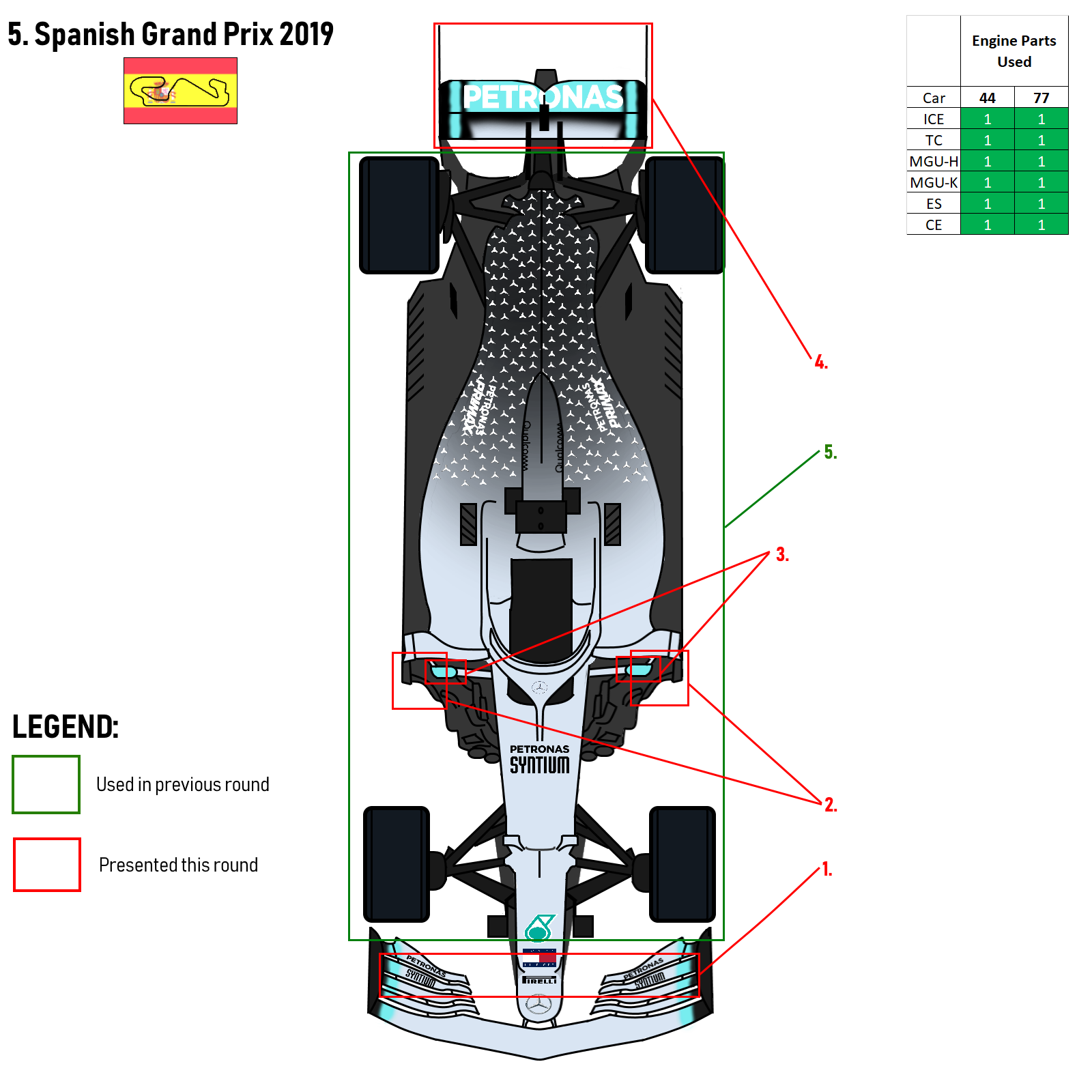 Mercedes returned for Barcelona to previous design of rear wing after runnning a low-downforce set up in Baku.